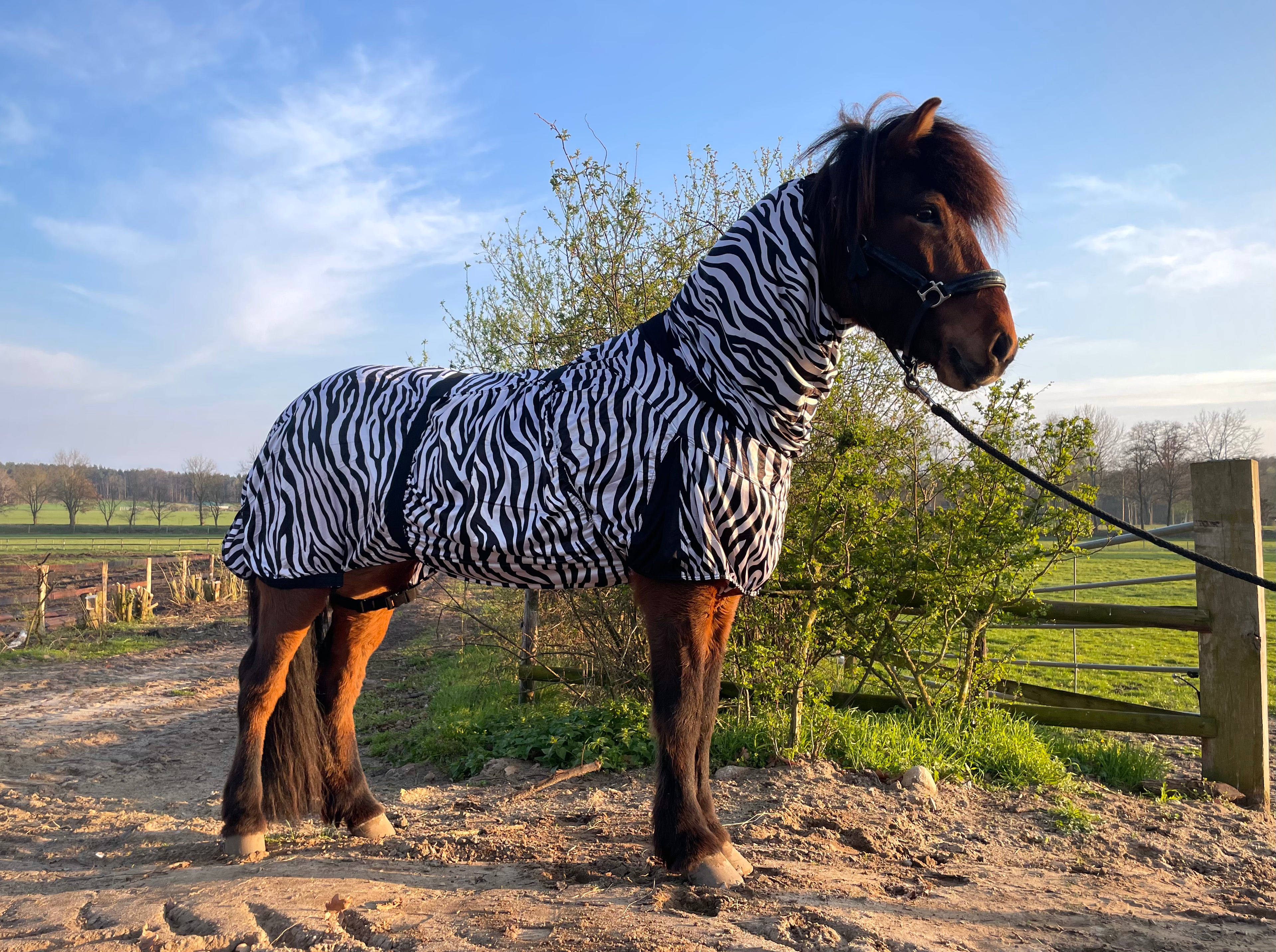 Durch den nachgewiesenen Effekt der Zebra Optik gehen automatisch deutlich weniger Fliegen und Kriebelmücken ans Pferd.