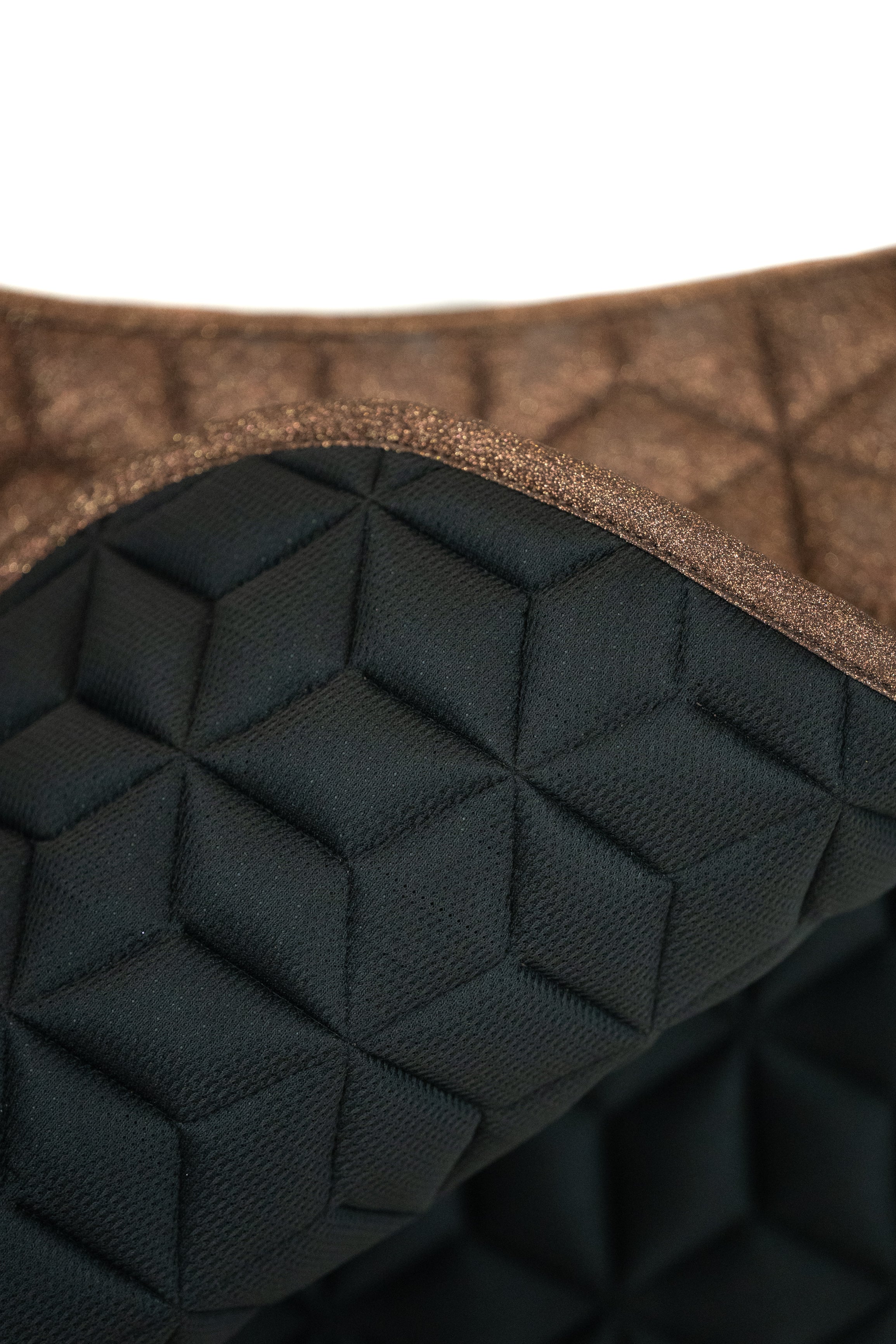 Die Sparkle Satteldecke hat auf der Unterseite ein weiches 3D Air-Mesh Material. Die Oberfläche ist durch die Glitzer Optik etwas rauher.