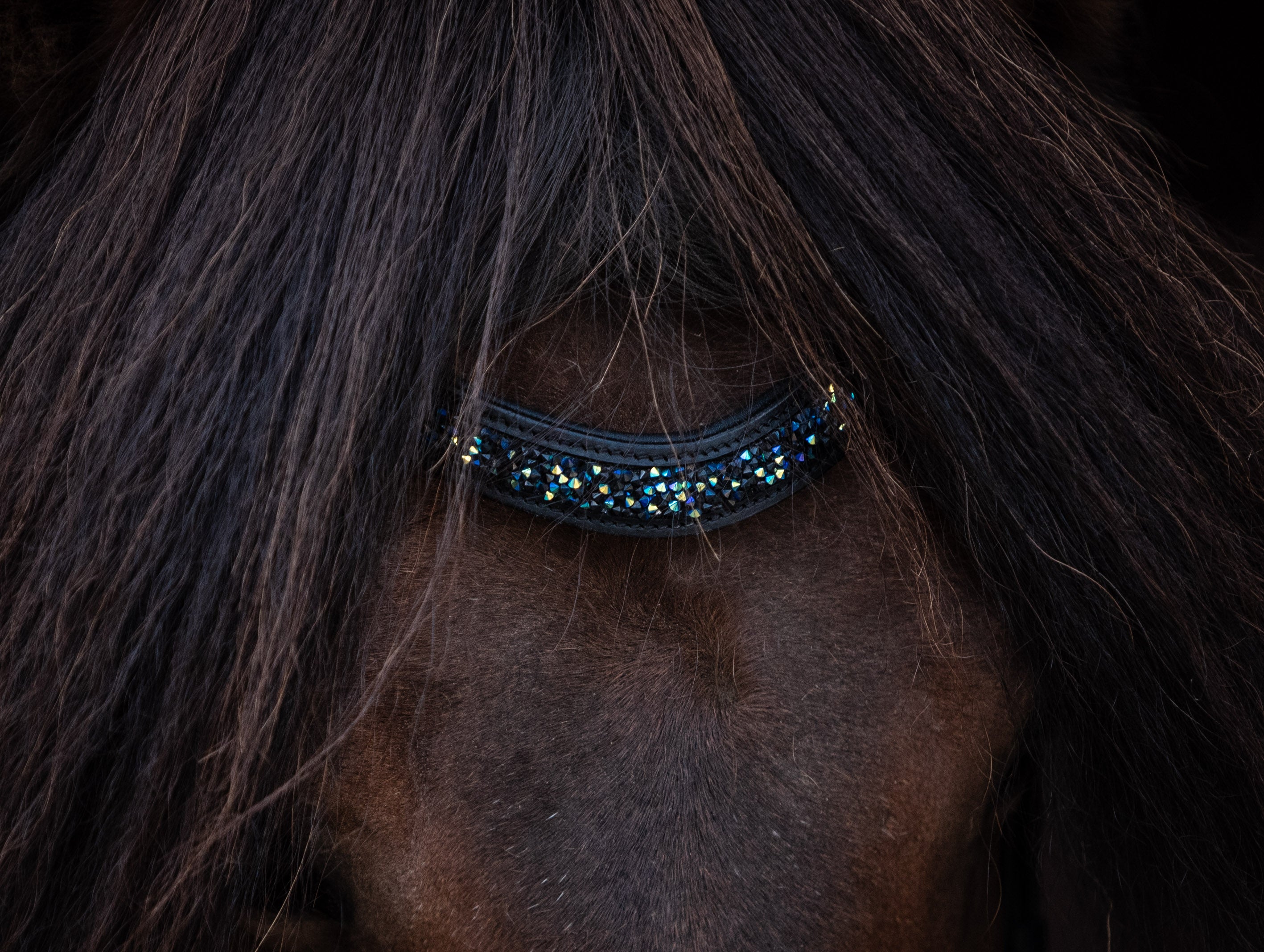 Der Stirnriemen ist ca. 40–42 cm lang, passt sich durch das weiche Leder flexibel an den Pferdekopf an.